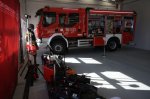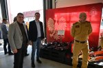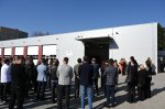Goście zwiedzili nowy magazyn. Hala ma 370 m2 powierzchni magazynowej. Obiekt wyposażony jest w instalację fotowoltaiczną o mocy 16 kW i pompę ciepła, zasilającą niskotemperaturowe ogrzewanie podłogowe. Budynek będzie służył jako zaplecze logistyczne i operacyjne Jednostki Ratowniczo-Gaśniczej PSP Pleszew - do garażowania samochodów pożarniczych i specjalistycznych, przechowywania sprzętu gaśniczego i ratowniczego.